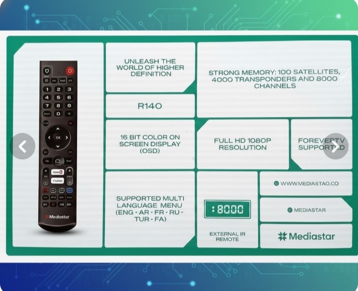 گیرنده دیجیتال مدیا استار R140 ورژن۲ با ریموت کنترل هوشمند